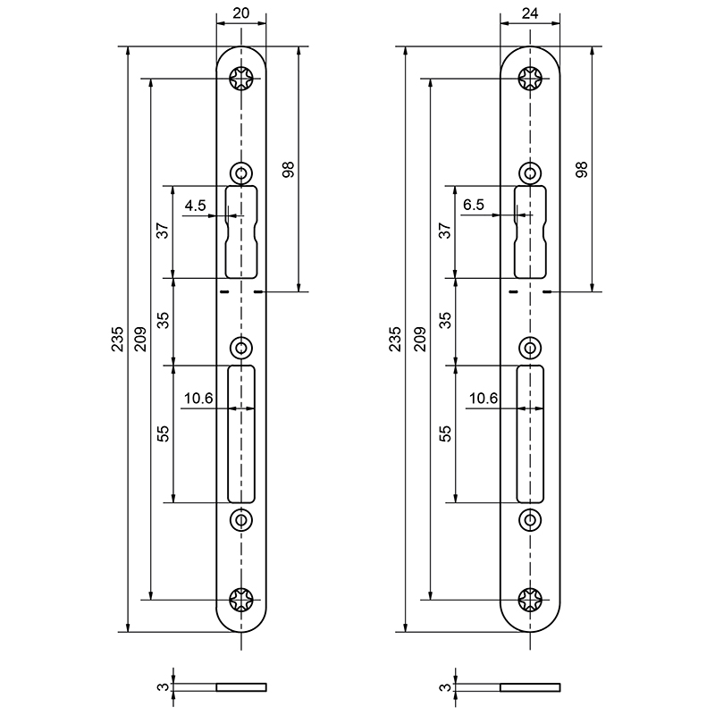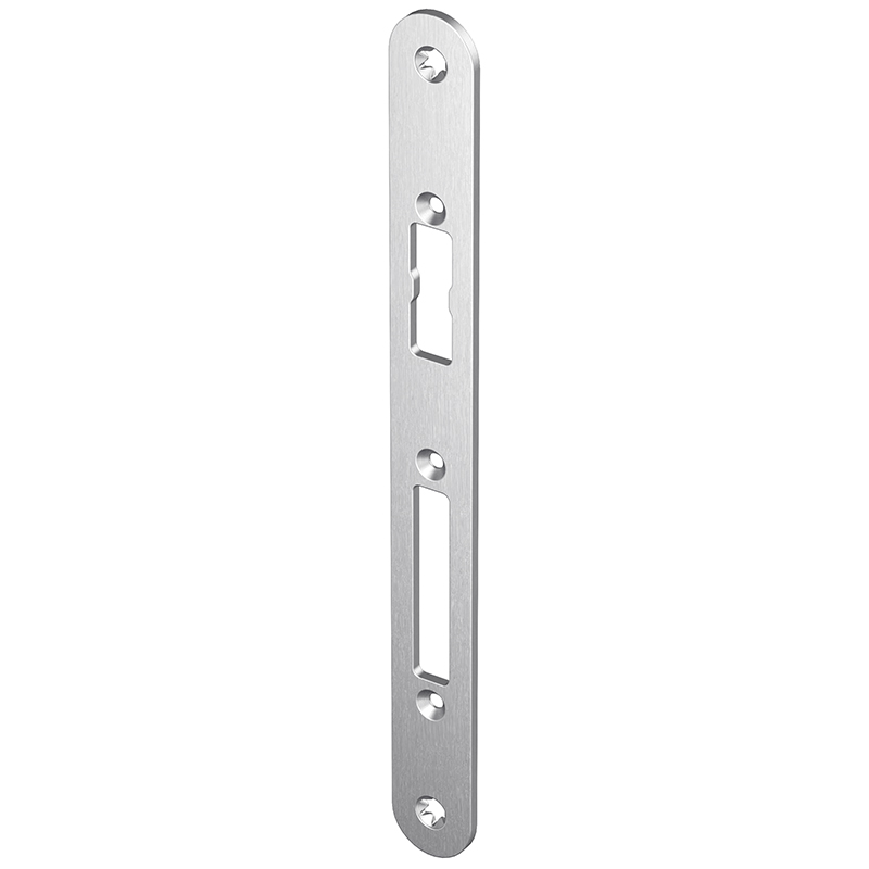 Edelstahl matt, nur in Verbindung mit Panik-Gegenkasten 12100 P verwenden, mit 3 Spezialstulpschrauben