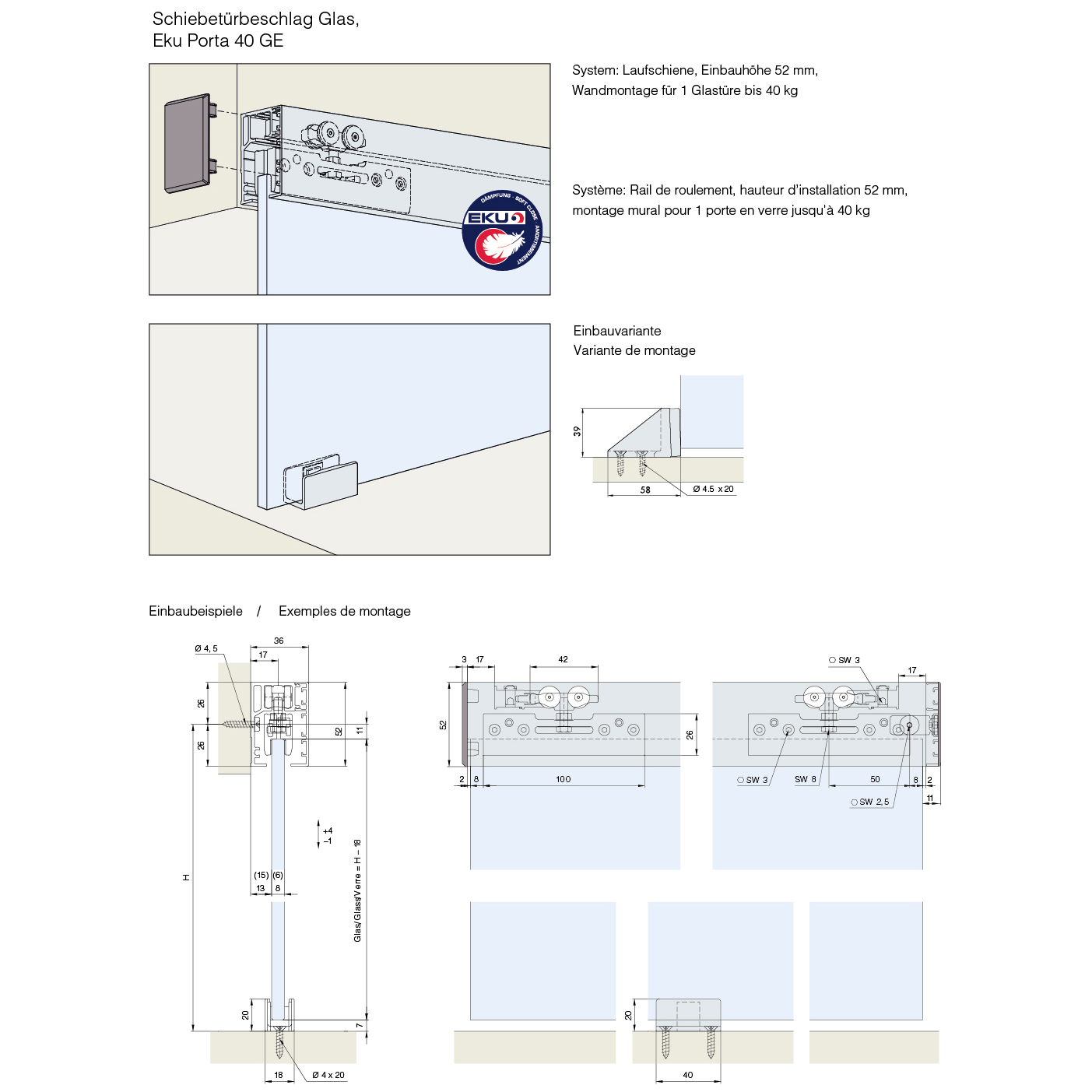 Schiebetürbeschlag Glas, HAWA Porta 40 GE