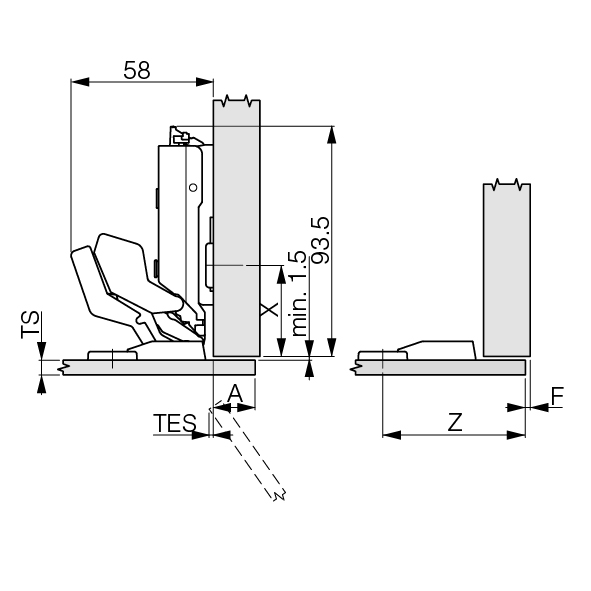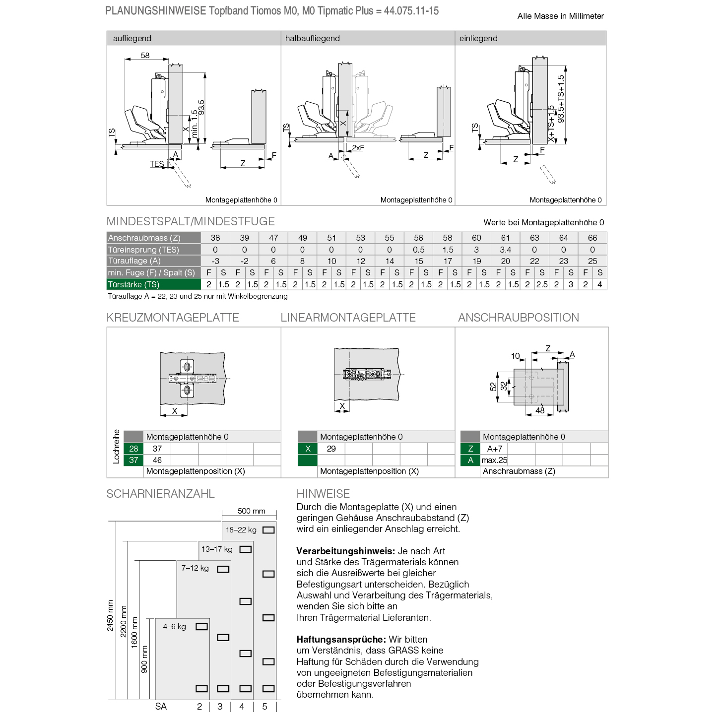 Öffnungswinkelbegrenzer GRASS® zu Tiomos M9, M0, Mirro