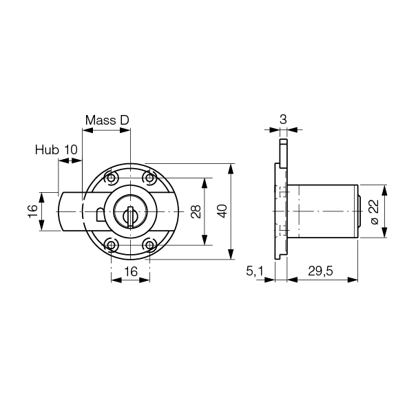 Zylinder Ø 22 mm, matt vernickelt, ohne Aufsteckrosette,