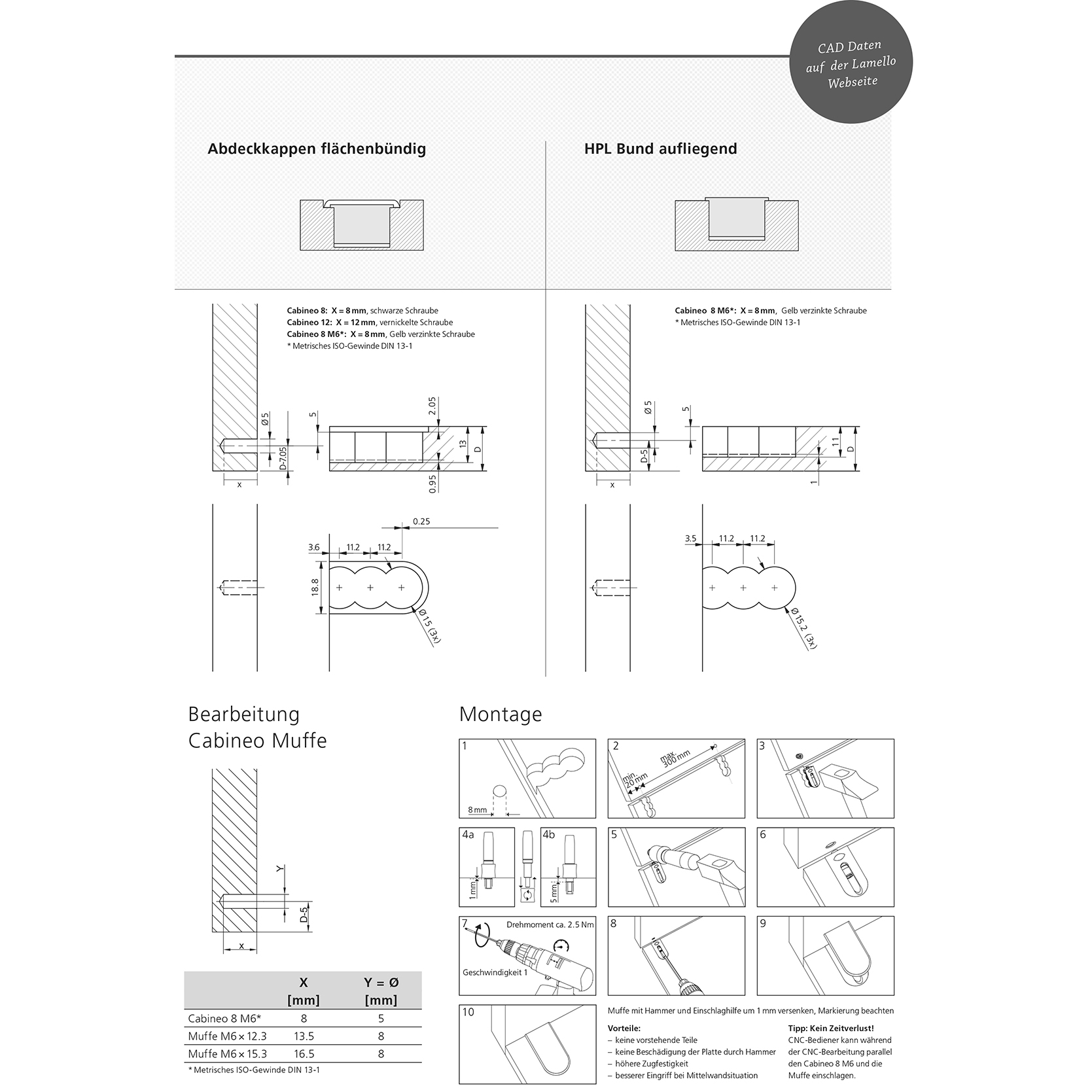 Korpusverbinder LAMELLO Cabineo 8 M6, für Plattendicke ab 12 mm