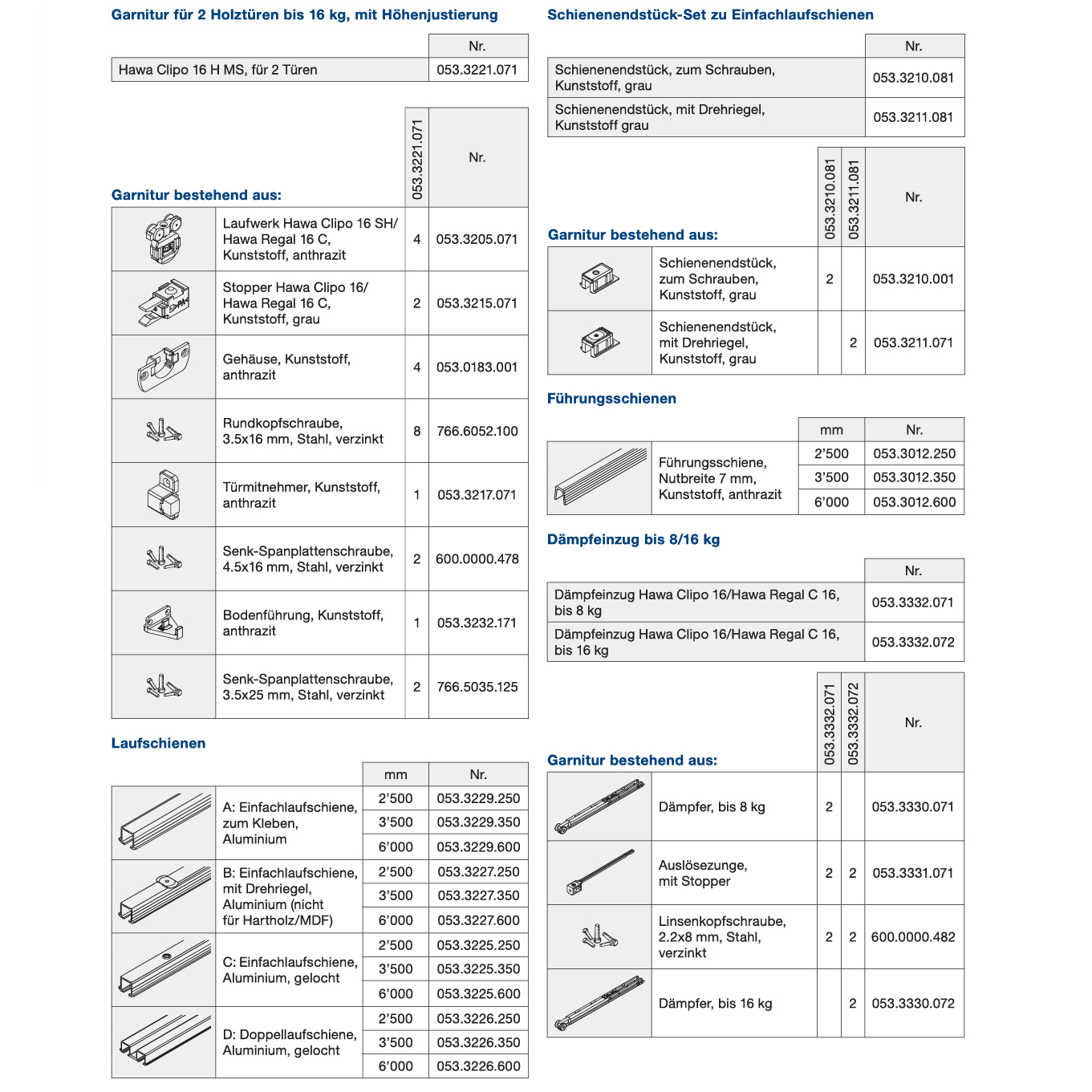 Schiebetürbeschlag Holz HAWA Clipo 16 H Mixslide