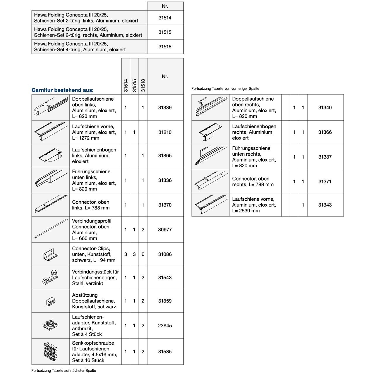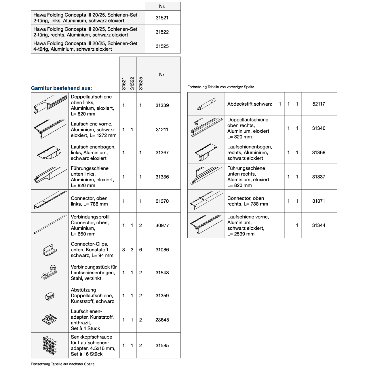 Schienen-Set 2-türig HAWA Folding Concepta III 20/25