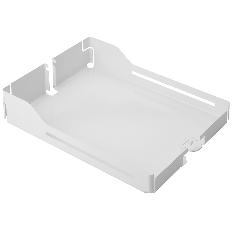 tablettes métalliques à parois fines et très stables, fonctionnant avec ou sans inserts de rails, à accrocher au cadre tubulaire armoire haute Standard
