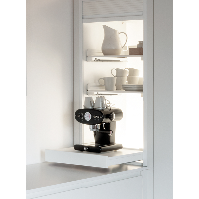 plastique, avec ce système transforme une tablette coulissante mobile en une surface de travail fixe temporaire, l'étagère ne coulisse pas involontairement en position fermée quand on travaille dessus, la solution idéale comme système coulissant pour machine à café, bureau à domicile, table pour le linge, table de présentation, table de préparation, table de conditionnement, table à langer, etc., utilisation facile: l'étagère est automatiquement bloquée quand elle est sortie dans son intégralité, pour déverrouiller le tout, tirer à nouveau l'étagère vers l'avant puis la rentrer, l'étagère peut être accrochée et décrochée à tout moment, le boulon de guidage latéral peut être réglé pour compenser les tolérances entre l'étagère et la paroi latérale, montage au-dessus des systèmes de guidage couramment disponibles dans le commerce pour les tiroirs en bois et à l'arrière sur la paroi arrière de l'étagère en bois, Click Stop peut être installé ultérieurement et des étagères coulissantes Extendo Libell Universal, on n'a besoin que de 18 mm derrière l'étagère