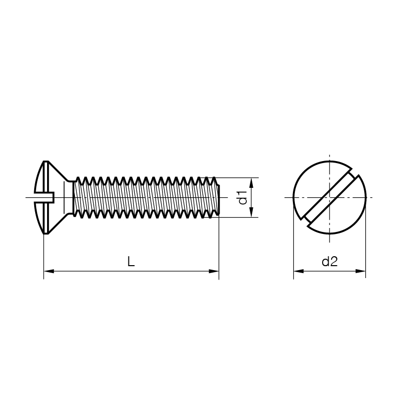 Edelstahl A2, mit metrischem Gewinde, mit Schlitz