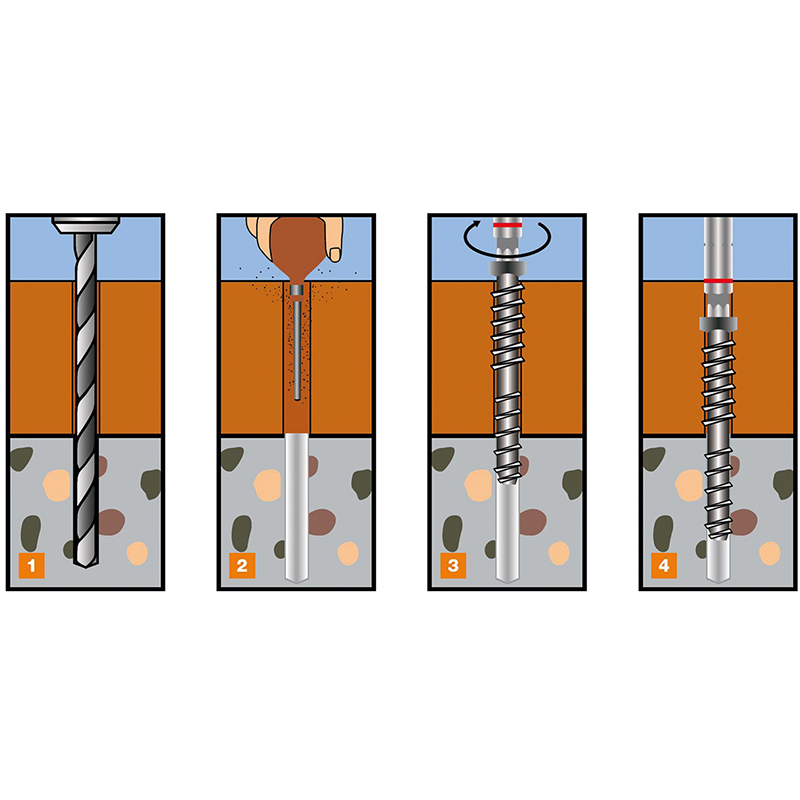 Setzwerkzeug zu Betonschraube MMS-TC, mit Setztiefenmarkierung und Skala, abgestimmtes System Schraube und Bit: bessere Passgenauigkeit, optimale Kraftübertragung, weniger Durchdrehen