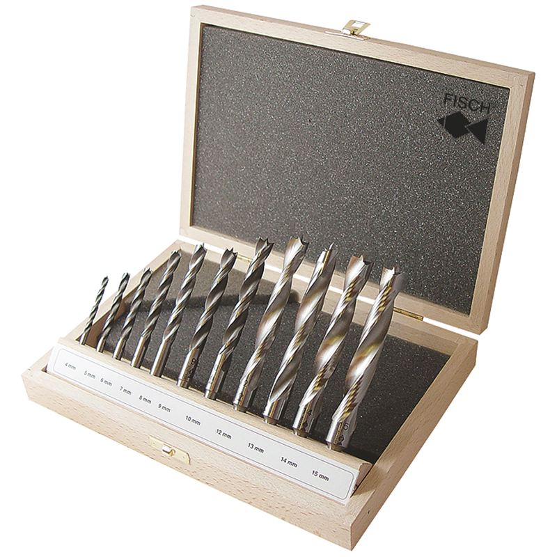 11-teiliger Bohrersatz in Holzkassette für rationelles Bohren in Weich- und Hartholz,