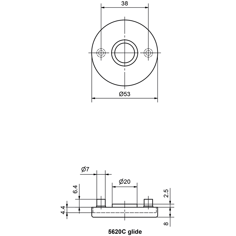 Edelstahl matt, PVD schwarz beschichtet, mit Drückerführung 16 mm, glide, Grundplatte innen mit 2 Führungsnocken, aussen mit Gewindenocken M4, Schraubenlochdistanz 38 mm, ohne Schrauben