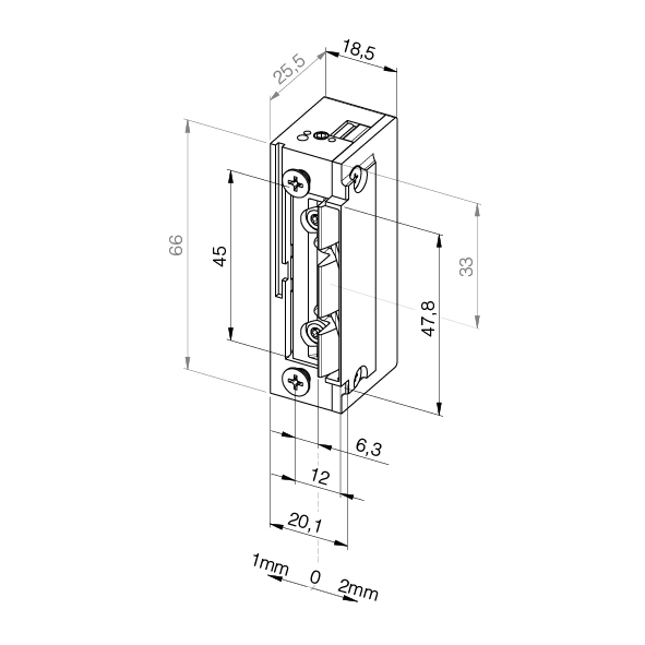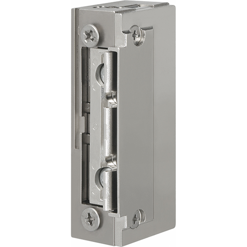 Arbeitsstrom-Türöffner mit Radiusfalle und Schlossfallenführung, auch als Sicherheitstüröffner einsetzbar, Türe kann nur während der Kontaktgabe (Impuls) geöffnet werden, bei Wechselstrom-Betrieb Summton hörbar (Dauerbetrieb mit Gleichstrom möglich), FaFix Verstellbereich 3 mm, symmetrische Bauform, universal DIN rechts und DIN links einsetzbar, für senkrechten und waagrechten Einbau, Festigkeit gegen Aufbruch 9000 N,