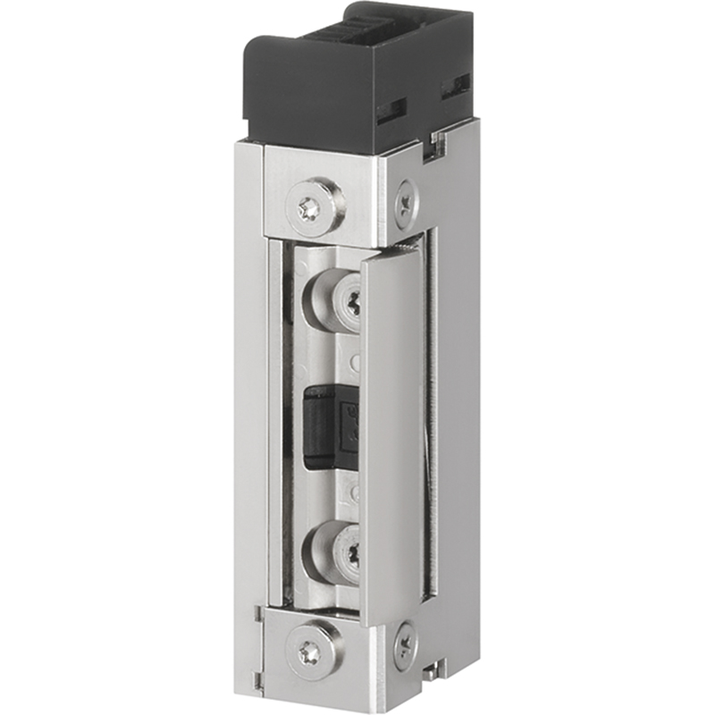 Arbeitsstrom-Türöffner mit Radiusfalle, auch als Sicherheitstüröffner einsetzbar, FaFix Verstellbereich 4 mm, universal DIN rechts und DIN links einstellbar, für senkrechten und waagrechten Einbau, mit Diode, dauerstromfest über den gesamten Spannungsbereich, sichere Entriegelung auch unter Vorlast, Vorlast max. 400 N / 800 N einstellbar, Festigkeit gegen Aufbruch 10'000 N, ohne Schliessblech