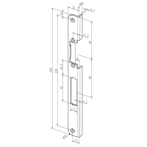 22 x 250 x 10 | 78A | Edelstahl | DIN rechts | |