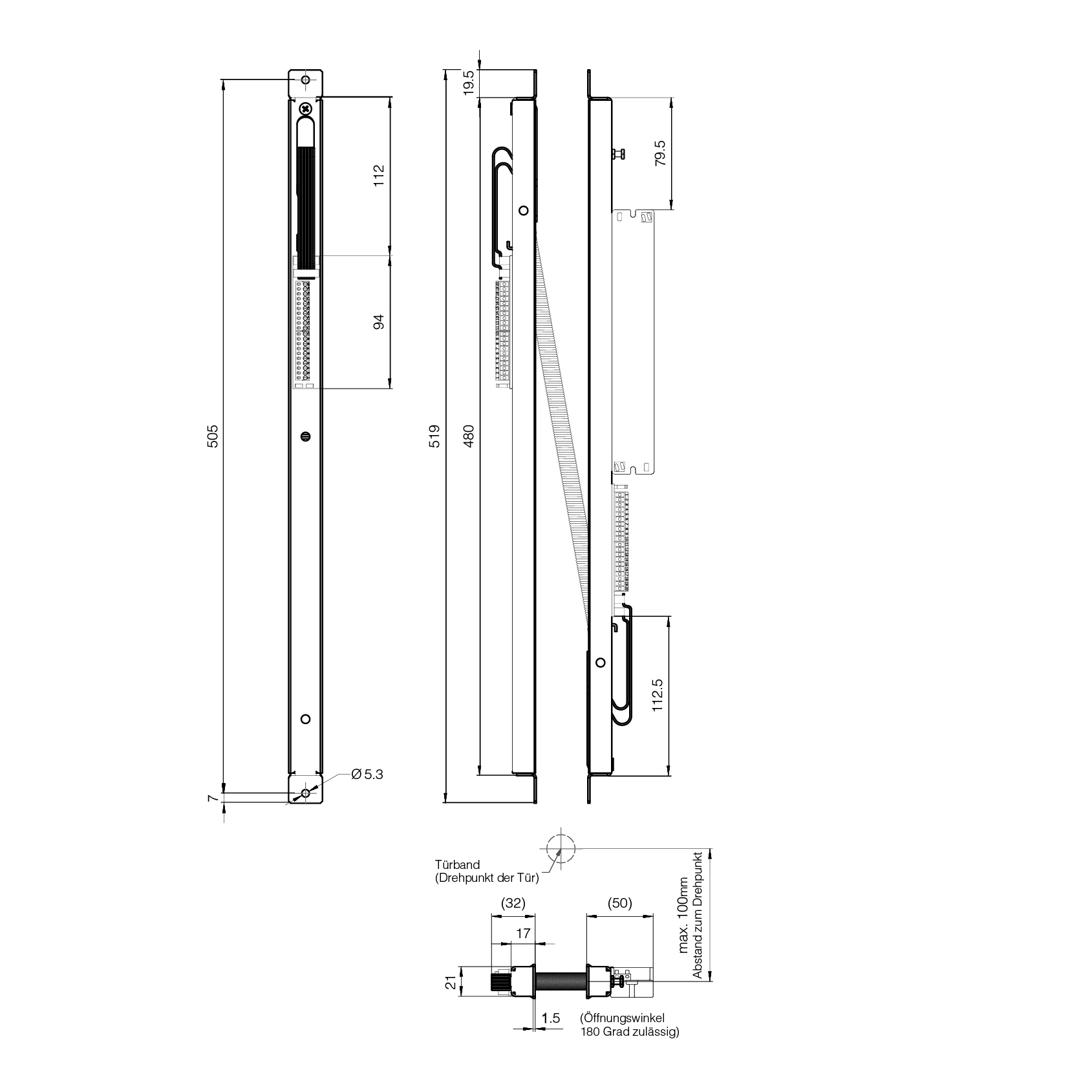 Edelstahl, steckbar, verdeckt, mit integriertem Flexkabel gegen Kabelbruch, Klemm- / Steck-Anschlusstechnik 20-polig mit DIP Switch für max. Stromaufnahme mit integriertem 24 Volt Gleichspannungs-Netzteil 1,4 A, beidseitige Einbauwanne für Metall-, Holz und Kunststoffprofile, Stromaufnahme max. 1 A 100% ED, 4 A max. 1 Sek. mit Jumper 1+2 gesteckt, PIN 1+2 PIN 3+4 gebrückt (Querschnittsvergrösserung) 2 A 100% ED, 5 A max. 1 Sek., Netzteil: Eingangsspannung 220 - 240 Volt AC, 50 - 60 Hz, Ausgangsspannung 24 Volt DC, 1,4 A, 35 W, Übergangswiderstand pro Signal 0,35 Ohm
