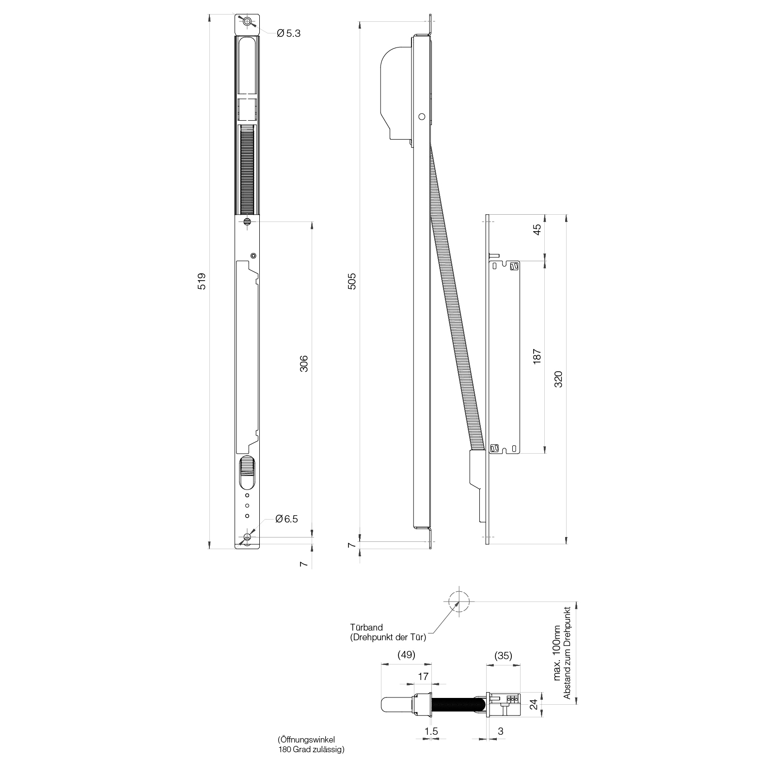 Edelstahl, steckbar, verdeckt, zur Kabeldurchführung mit integriertem 24 Volt Gleichspannungs-Netzteil 1,4 A, für die FlipLock-Schlosslinie, einseitige Einbauwanne für Metall-, Holz und Kunststoffprofile, Stromaufnahme max. 1,4 A bei 24 Volt DC, Netzteil: Eingangsspannung 220 - 240 Volt AC, 50 - 60 Hz, Ausgangsspannung 24 Volt DC, 1,4 A, 35 W, Temperatur: -20° C / +45° C, tc = 90°