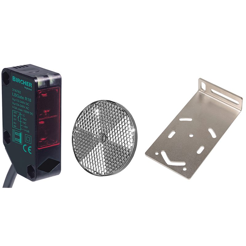 Reflexions-Lichtschranke mit Reflektor und Haltewinkel