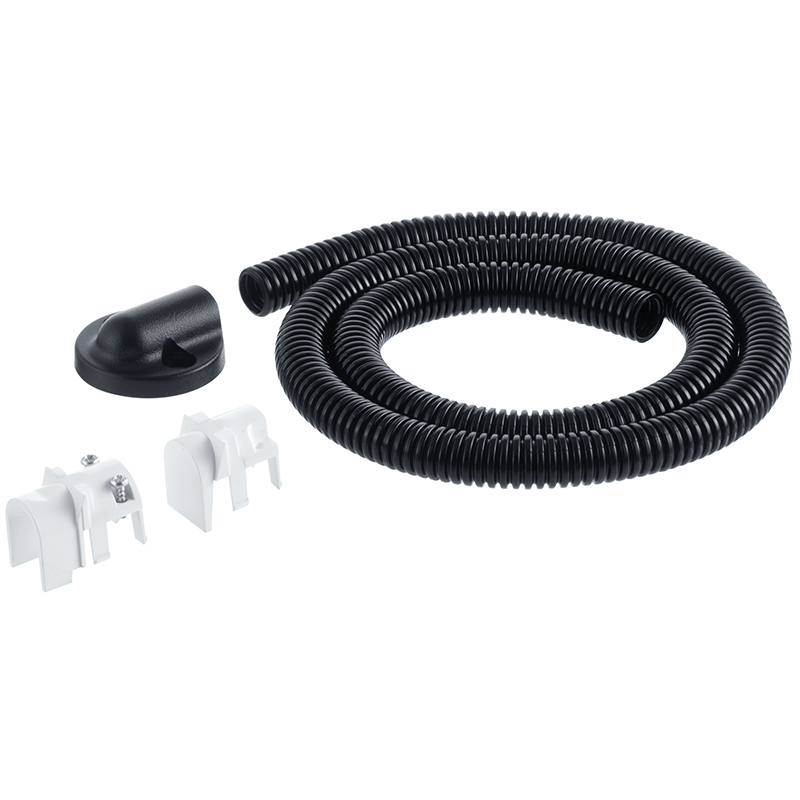 Lieferumfang: Wellschlauch schwarz, Schraubensets mit Verschlusskappen und Zugentlastung