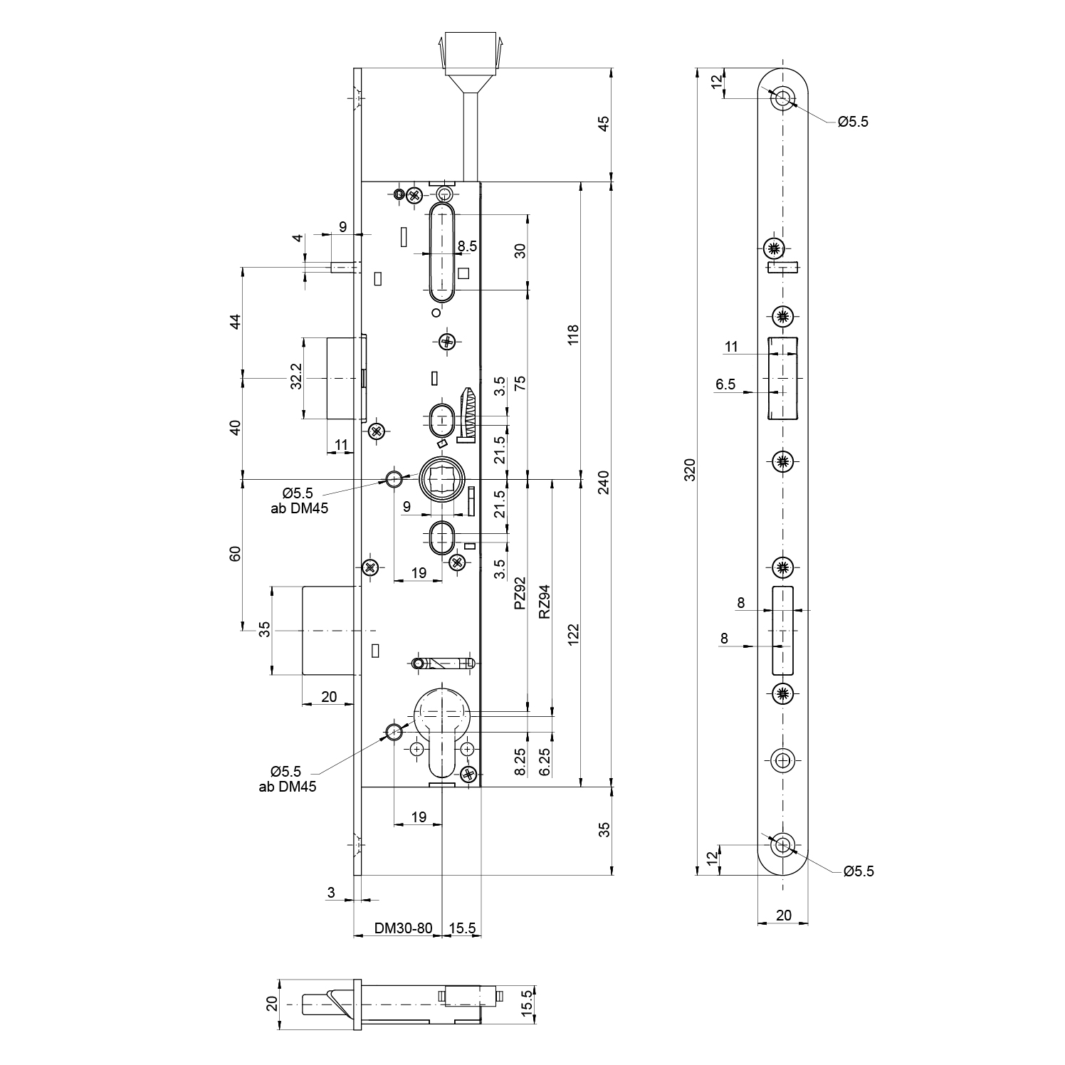 Panik-Einsteckschloss MSL 14574PE-SV, sFlipLock check, 1-flüglig