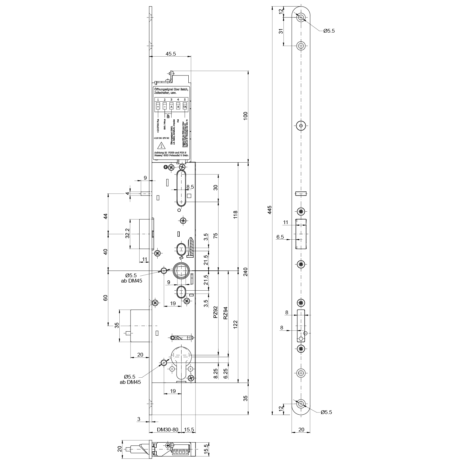 - Elektrische Schnittstelle RS485, z.B. für direkte Kommunikation via Biometriescanner und Fehlerspeicher. Manipulationsschutz Öffnungsimpuls nur noch via BUS.