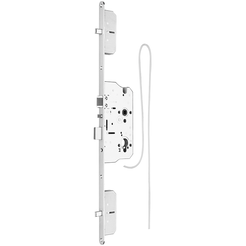 elektrisch kuppelbare Mehrfachverriegelung mit integrierter Selbstverriegelung, Fallenblockierung, Ablaufsteuerung und Panik C Funktion, für Haupt- und Nebeneingangstüren mit elektrisch gesteuerter Drückerbedienung im Wohnungs- und Wirtschaftsbau, die Panik C Funktion mit geteilter Schlossnuss und getrennter Drückersteuerung (aussen / innen) bietet die ideale Kombination zwischen Zutrittskontrolle und Fluchtweg, der Aussendrücker kann elektrisch oder über den gehaltenen Zylinder mechanisch (Notöffnung) ein- / ausgekuppelt werden, der Zutritt wird über ein Identifikationssystem z.B. RFID, Biometrie, Gebäudeleitsystem etc. oder den Zylinder geregelt, Betriebsart (Ruhe- / Arbeitsstrom), die Panikseite und der Manipulationsschutz sind umstellbar
