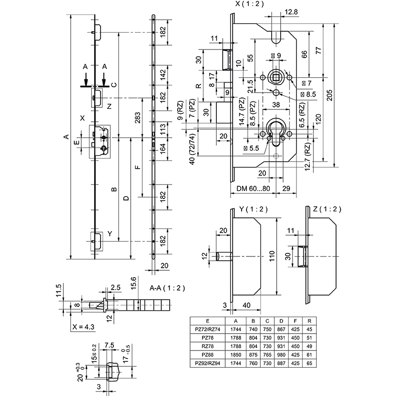 - Ausschliesslich Panik Vierkantstift 5920 17.190.11-17 verwenden.