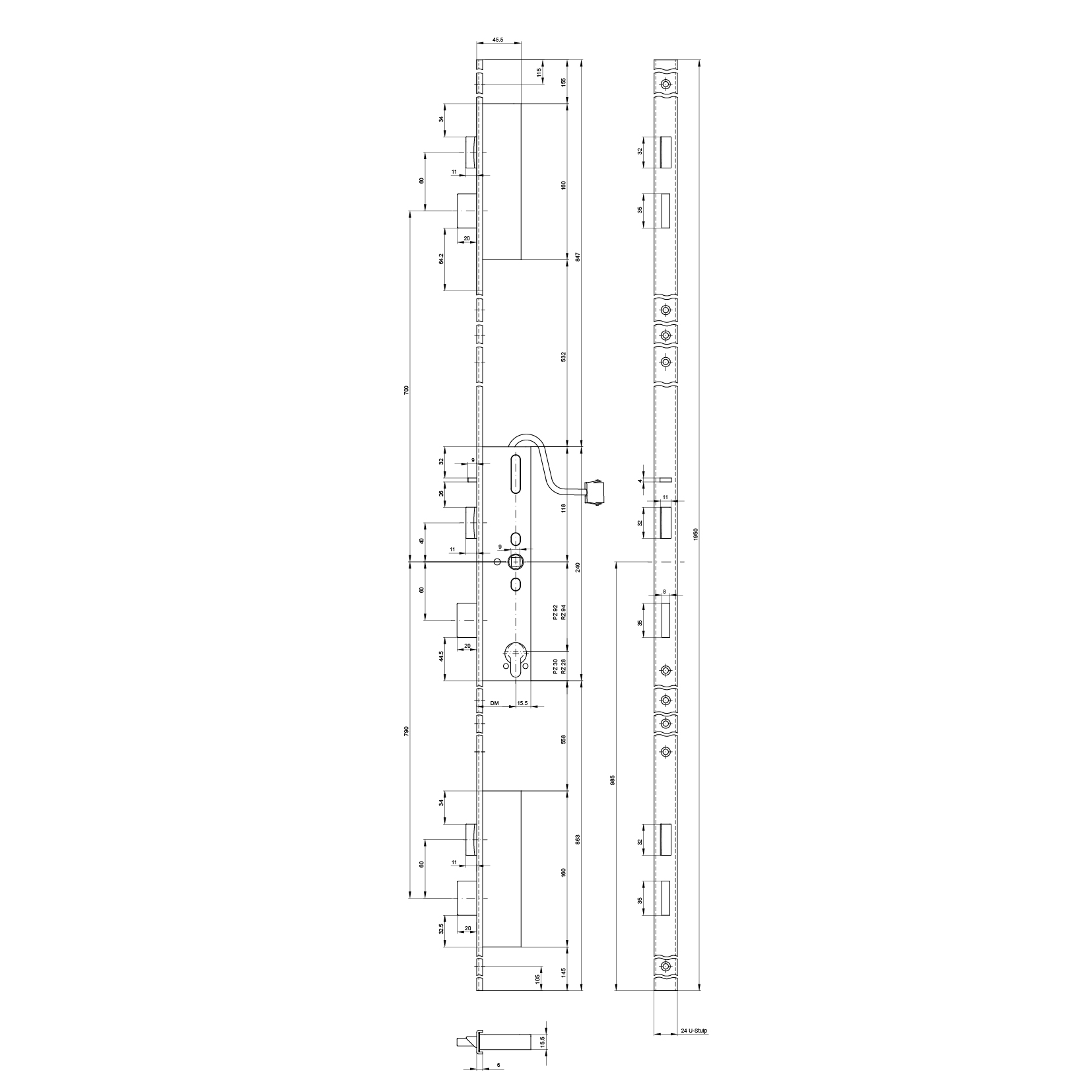 Panik-Mehrpunktverriegelung MSL 24576PBe-SV, mFlipLock check, 1-flüglig