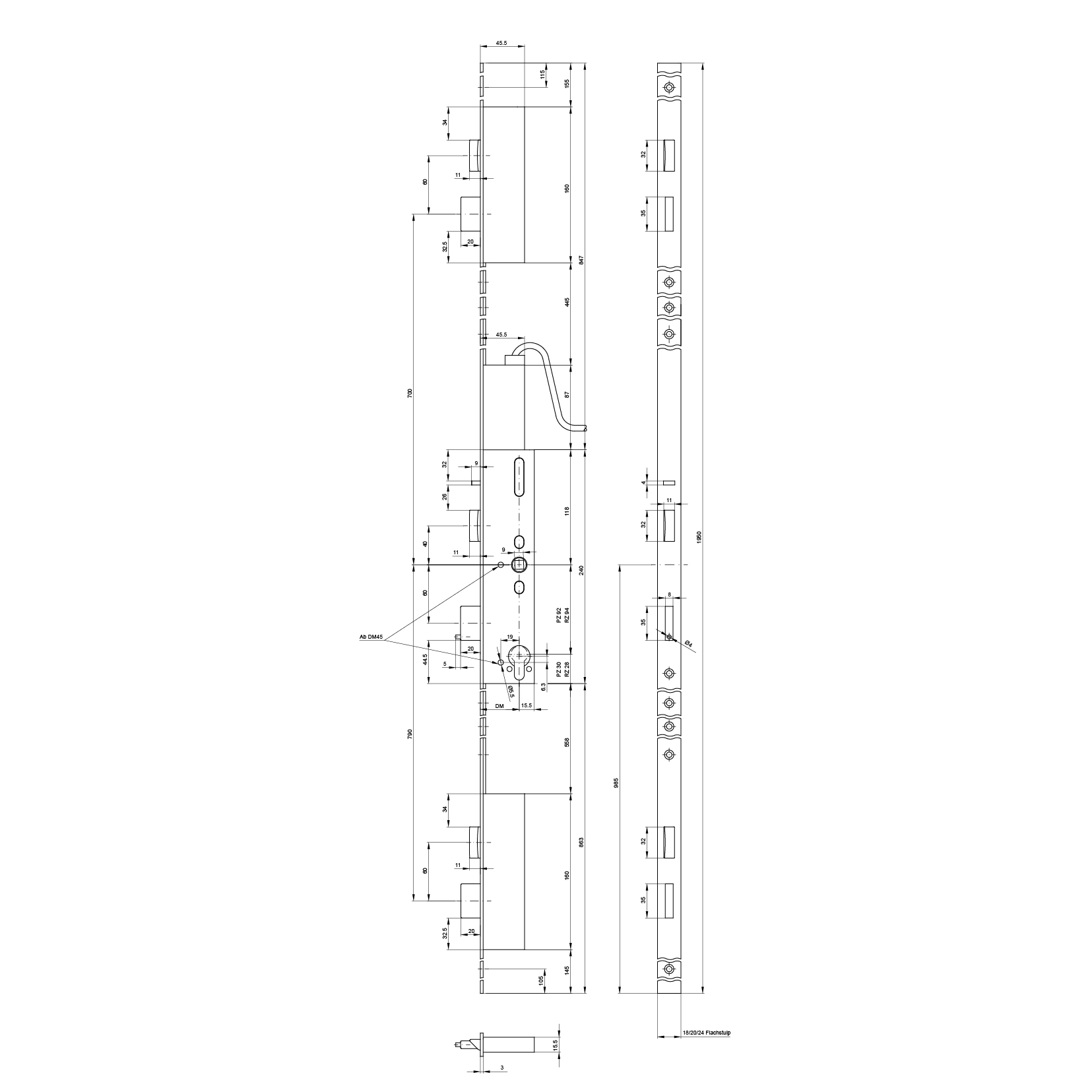Panik-Mehrpunktverriegelung MSL 25544PE-SV-ZF mFlipLock drive, 2-flüglig