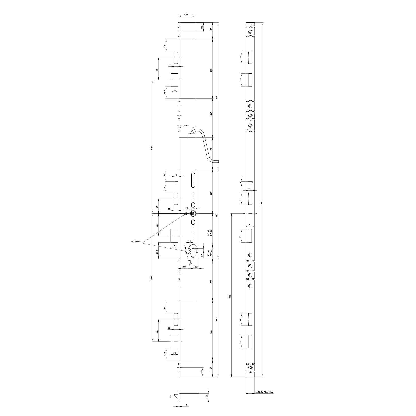 Panik-Mehrpunktverriegelung MSL 26546PBe-SV, mFlipLock e-drive, 1-flüglig