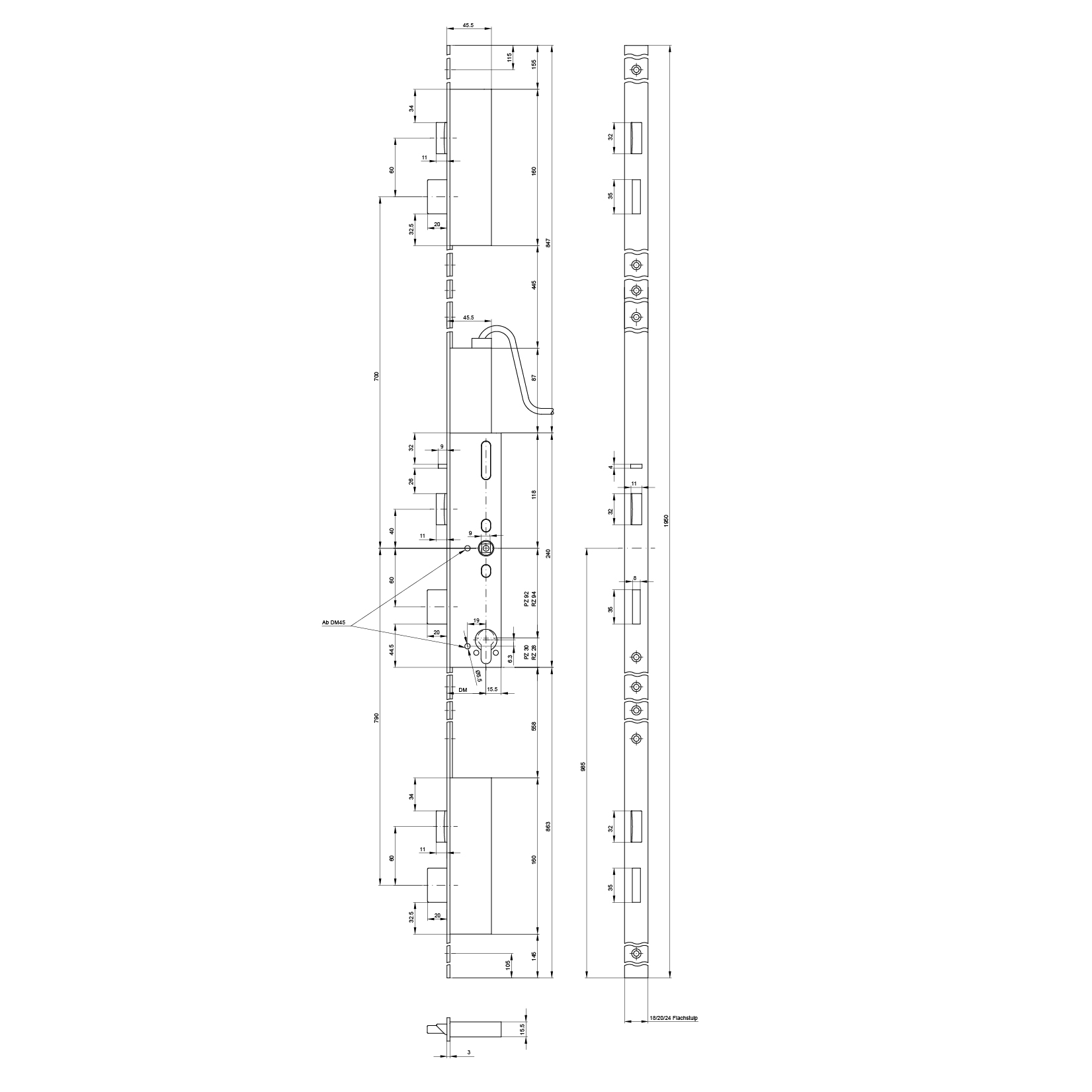 Die drückergesteuerte Mehrpunktverriegelung mFlipLock e-access, ist mit einer geteilten Drückernuss ausgestattet, sodass der Innendrücker angekoppelt und der Aussendrücker nicht angekoppelt ist. Typischerweise wird auf beiden Türseiten ein Beschlag mit Türdrücker montiert. Das Verlassen bei verriegelter Türe, ist über den Innendrücker jederzeit möglich. Diese ziehen die 3 Langriegel zurück und gleichzeitig werden die 3 Kippfallen weich (Panikfunktion, einwärts öffnend). Beim Entriegeln von aussen via einen elektronischen Impuls, Fingerprint, Taster, Badge oder Zeitschaltuhr wird der Aussendrücker angekoppelt und der Riegel zunächst bis auf 5 mm eingezogen. Über den Türdrücker wird anschliessend die Kippfallen freigegeben und das Schloss vollständig entriegelt. Bei verriegelter Tür ist eine Notöffnung von aussen über den Zylinder jederzeit möglich. Wenn die Türe schliesst, verriegelt das Schloss automatisch wieder (Selbstverriegelung). Dieses Schloss gibt es immer in Kombination mit einer Auswertesteuerung (AWS), sie dient dazu alle Kontakte des Motorschlosses mFlipLock e-access auswerten zu können. Das Motorschloss kann somit für definierte Zeiten geöffnet, geschlossen, in Tagstellung gefahren oder komplett verriegelt (gesperrt) werden. Die Versorgungsspannung für das Motorschloss wird ebenfalls von der AWS zur Verfügung gestellt. Im Notfallmodus (Netzausfall / Auslösung Brandmeldezentrale) wird das Motorschloss im geöffneten Zustand automatisch durch einen integrierten Puffer-Kondensator verriegelt. Beim separaten Sperreingang (verriegelt) werden alle Eingangssignale abgekoppelt, somit fährt das Motorschloss automatisch in Verrieglung.