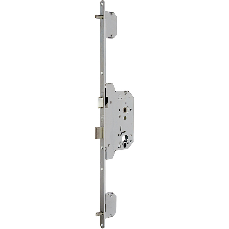 4-Punkt-Verriegelung durch Hauptriegel, 2 Riegelbolzen und Fallenblockierung, Bolzen- und Riegelvorschub 20 mm, 1-tourig, aus hochwertigem Spezialstahl, durchgehende Nuss 9 mm, mit Wechselfunktion, Mitte Nuss bis OK Schlosskasten 51,5 mm