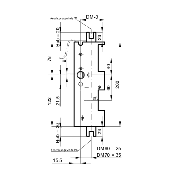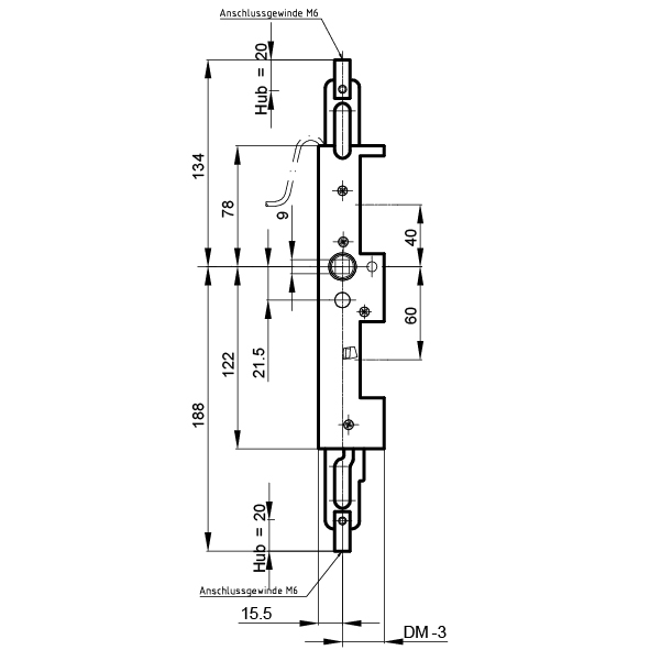 mit Stangenanschluss M6 für Oben- und Untenverriegelung,