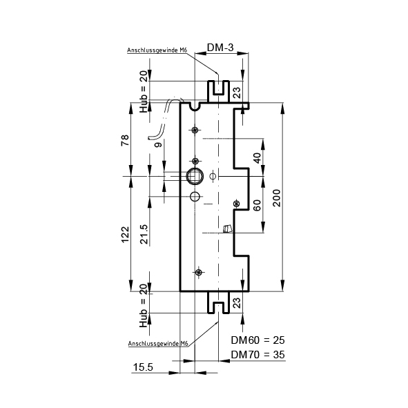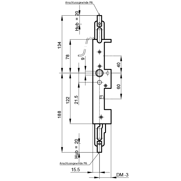 mit Stangenanschluss M6 für Oben- und Untenverriegelung,