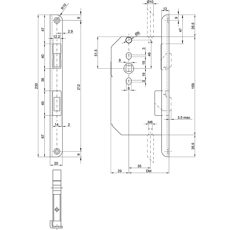 - In Verwendung mit den Panikschlössern 1714PE-ZF, 1717PB-ZF in zweiflügligen Holztüren.