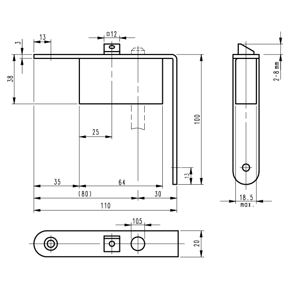 für automatische Standflügelverriegelung, Winkelstulp Edelstahl matt, abgerundet 20 x 110 / 100 mm, DIN links und DIN rechts umstellbar,