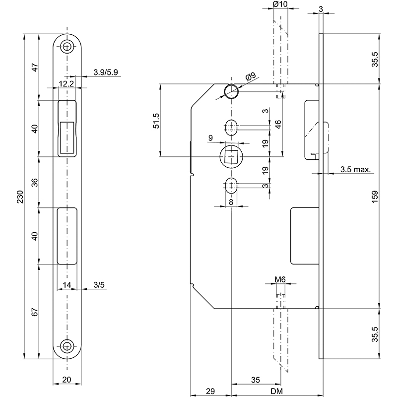 - In Verwendung mit den Modellen 1113, 1123, 1255, 1755, 1854, 1855, 1856, 1857, 1857H in zweiflügligen Holztüren.