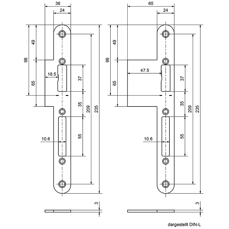 Edelstahl matt, nur in Verbindung mit Panik-Gegenkasten 12100 P verwenden, mit 3 Spezialstulpschrauben