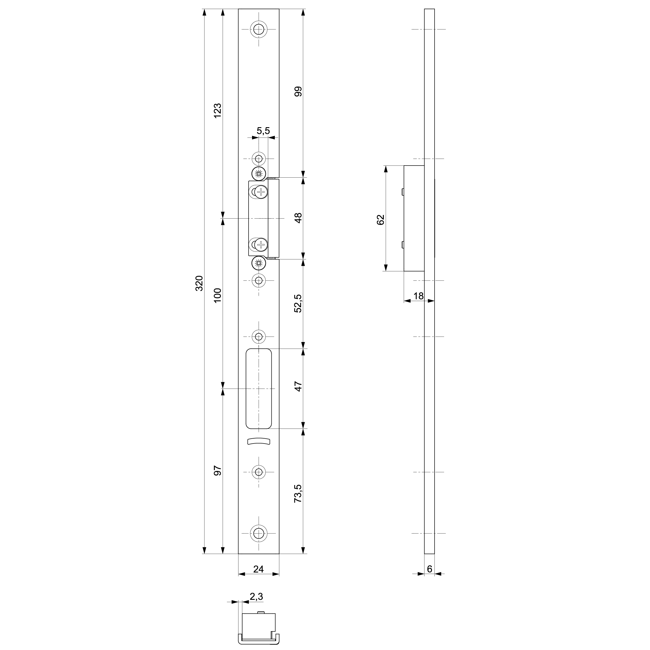Edelstahl matt, seitlich 3 mm verstellbar,