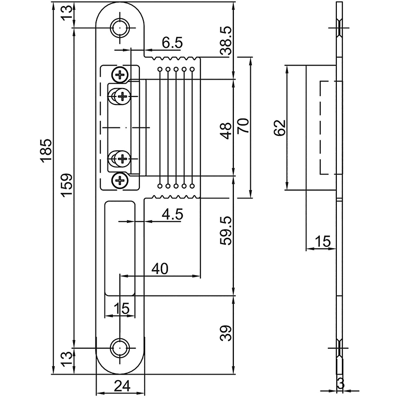 - 185 x 24/52 x 3 mm