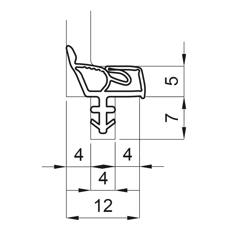 TPE-Qualität, für Futtertüren, kann geschweisst und je nach Profil geklinkt bzw. stumpf gestossen werden, Anschlagluft 5 mm