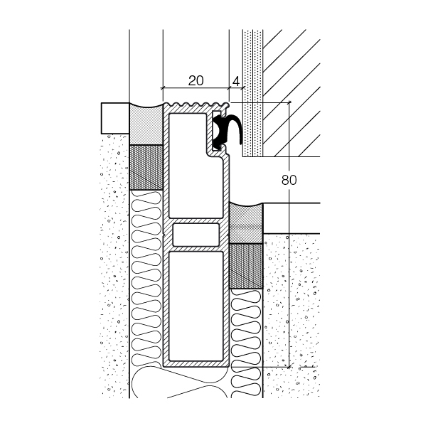 Aluminium, ungebohrt, Türen können bis Lichtmass 1050 mm ohne Schwellenholz und die Schwelle als freitragendes Bauteil eingesetzt werden, Unterlagsboden und Bodenbelag kann bis an die Schwelle geführt werden, so dass das Abschwinden des Unterlagbodens keine Risse hinterlässt, für Akustiktüren