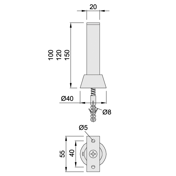 Trennwandstütze mit flacher Auflage, Alu oder Edelstahl