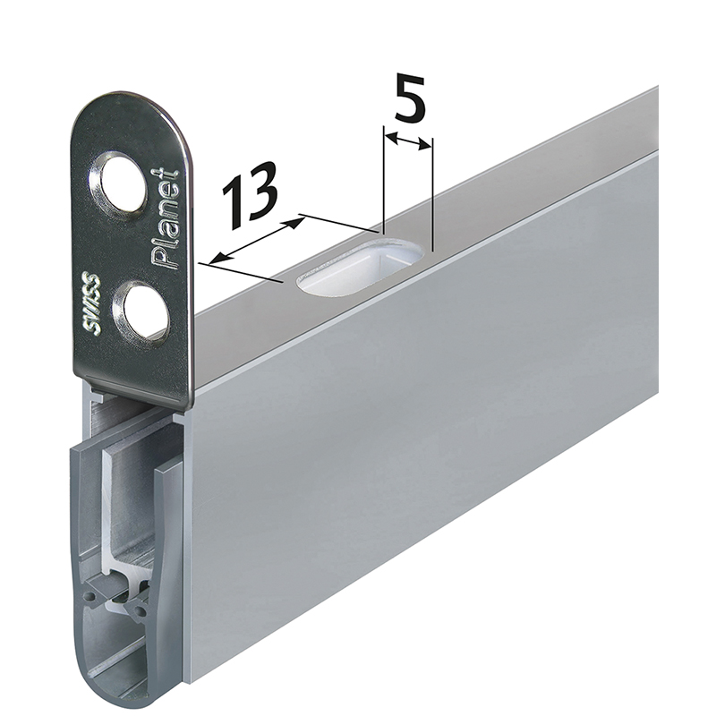 Türabsenkdichtung PLANET HS RD / 48 dB + TR125, rauchdicht, mit Bohrung 5 x 13 mm für Kantenriegel, Dornmass 30 mm, beidseitig kürzbar