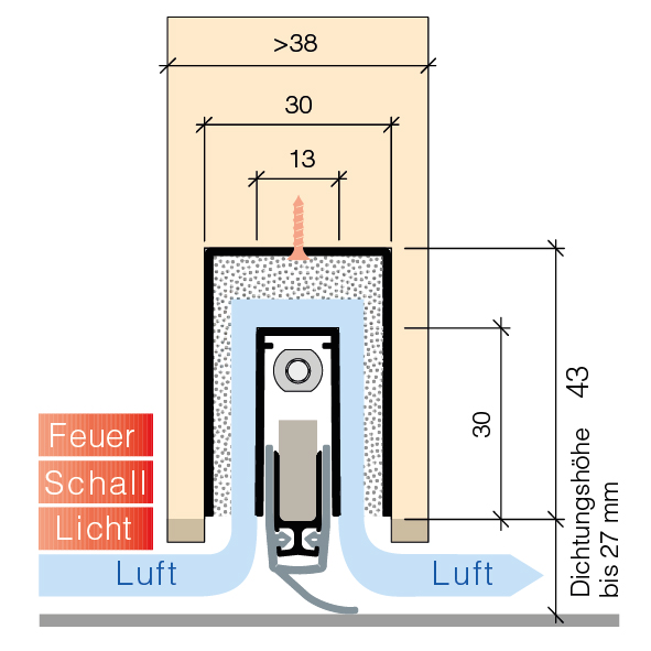automatische Türabsenkdichtung, für Türen mit Luftdurchlass und Schallschutzanforderungen in Minergie-, Niedrigenergie- und Passivhaus mit kontrollierter Lüftung,