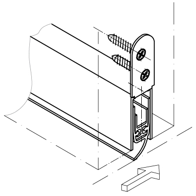 mit Silikon-Schräglippe, Luftdurchlass 200 qm/h, Messwert 30 qm/h bei Druckdifferenz von 3,9 Pa und Lüftungslänge 1050 mm, Schalldämmwert 27 dB bei Bodenabstand 7 mm, mit Montageset für seitliche Befestigung
