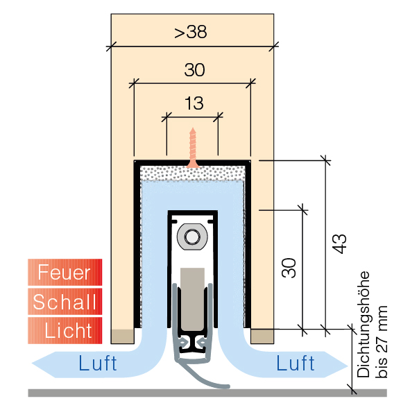 automatische Türabsenkdichtung, für Türen mit hohem Luftdurchlass und Schallschutzanforderungen in Minergie-, Niedrigenergie- und Passivhaus mit kontrollierter Lüftung,