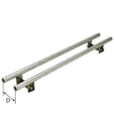 Stahl feuerverzinkt, Steindollen verbunden mit eingeschweissten Querstreben, Rohrlänge und Rohrdistanz (Mass D) gemäss Ihren Angaben, für Schiebetorrollen Ø 120 - 180 mm
