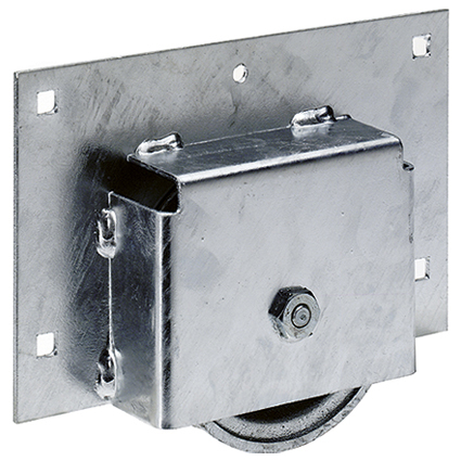 Stahl feuerverzinkt, Gehäuse zum Einlassen, für Torstärke ab 42 mm, mit Präzisionskugellager, Rolle mit runder Rille für Rohr-Ø 27 mm