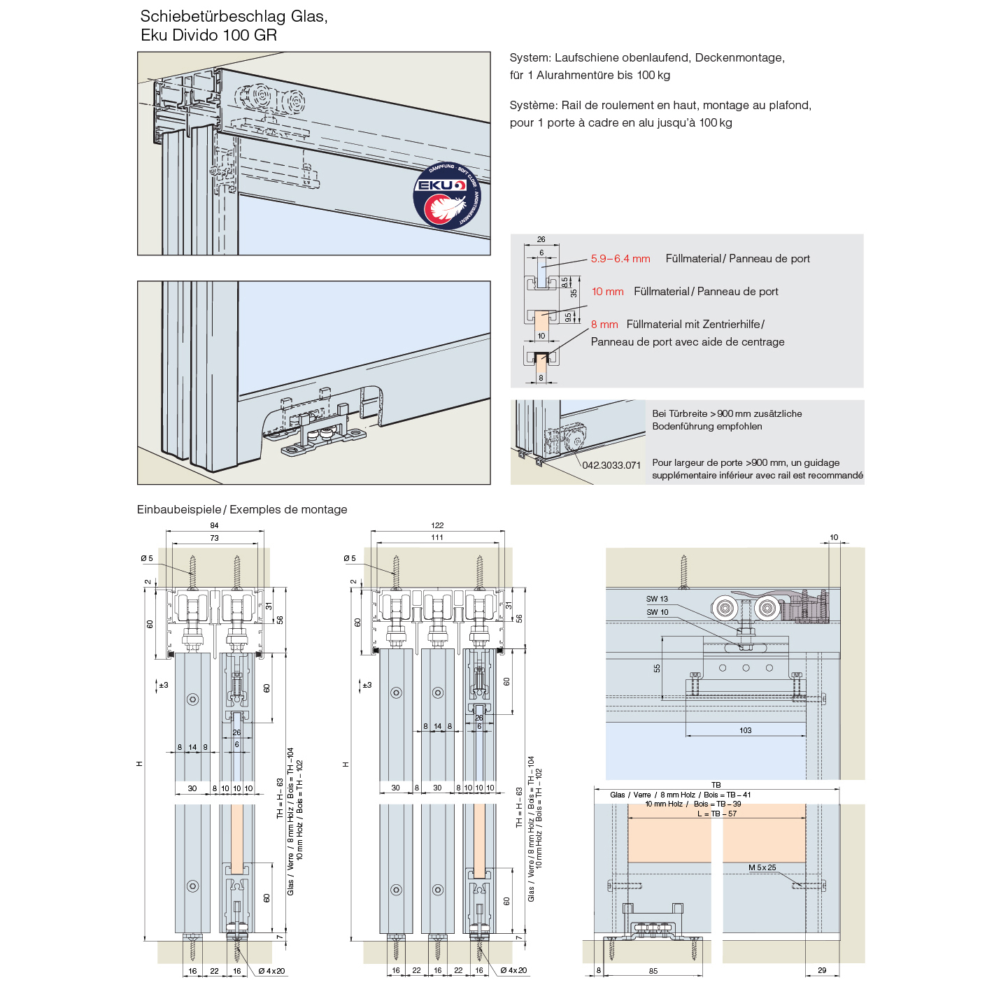 Schiebetürbeschlag Glas, HAWA Divido 100 GR