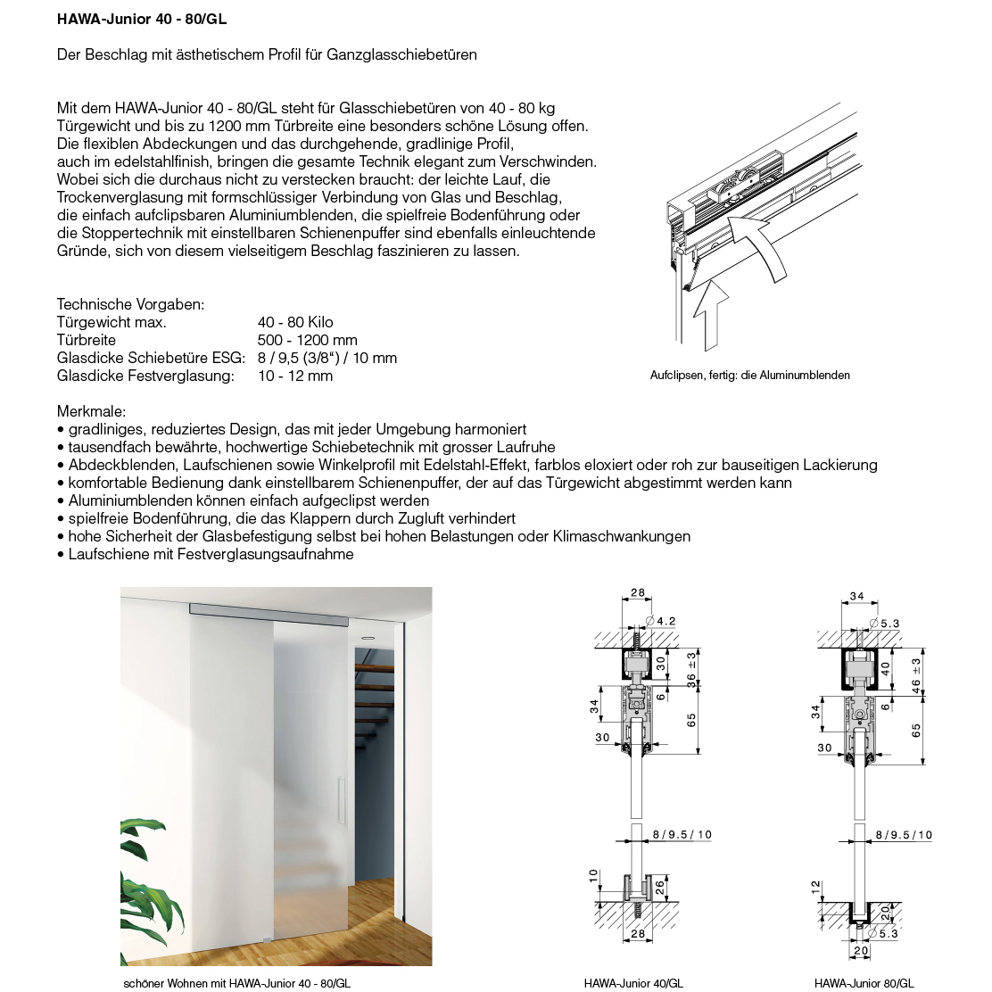 Schiebetürbeschlag Glas, HAWA Junior 40/GL