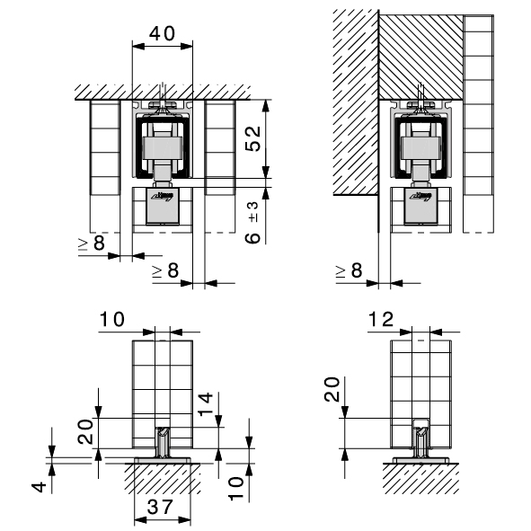 mit Tragprofilaufhängung zum Einfräsen 22 x 25 x 125 mm,
