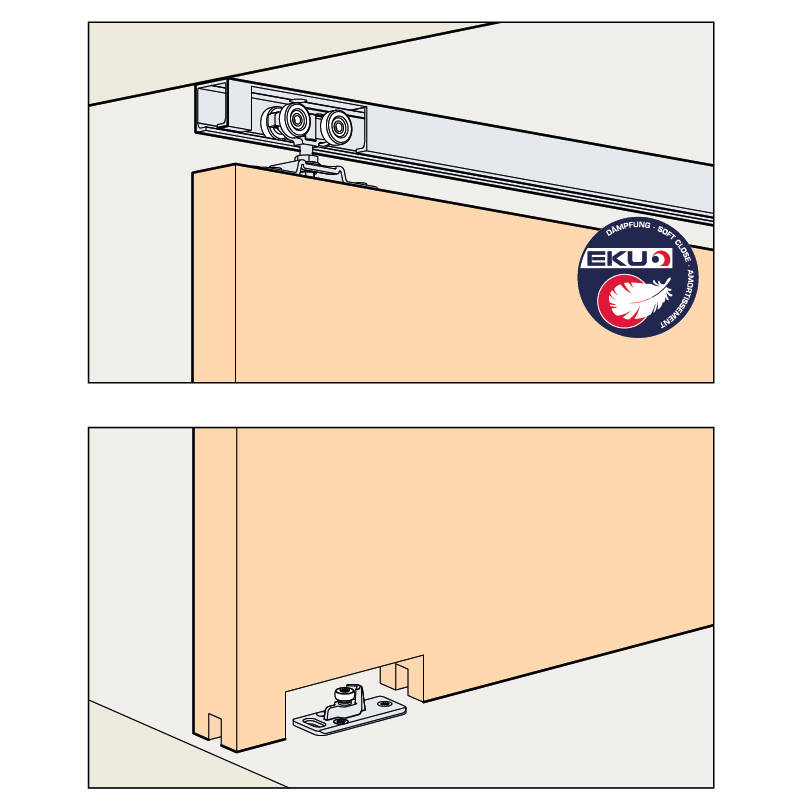 - Laufschiene mit Montageöffnung siehe 21.010.26, die Montageöffnung stellt sicher, dass die Lauftechnik und Einzugsdämpfung nachträglich eingebaut werden können, ohne dass die Laufschiene demontiert werden muss.
